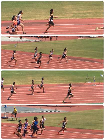 2日目の今日もとてもとても暑い中でしたが、体調管理を第一にその中でかつ自分のベストを最大限に出せるように一人一人がしっかり考えて頑張ってきました。男子100mでは、予想を上回る素晴らしい記録の連続で、タイムがアナウンスされるとスタンドがざわめくほどでした。来週金曜日もブロック大会があります。