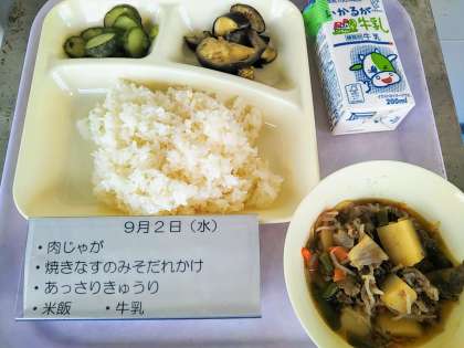今日から保健委員会からの放送が再開しました。給食の献立に関係する話を放送します。今日は「なす」についてでした。