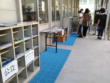本日、PTAのみなさんが、生徒たちに向けて、高校案内のパンフレットを図書室前に準備してくださいました。