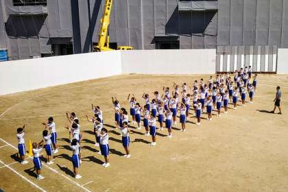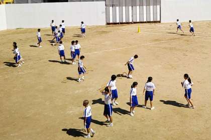 午後の授業で、1年生が開会式と個人種目別の練習をしていました。暑い中、がんばって練習しています。体育大会当日がとても楽しみです。