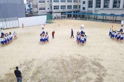 今日の2・3時間目は3年生の学年練習が運動場でおこなわれました。雨のため最初は体育館での練習でしたが、天候が回復したので3時間目は運動場に出ておこないました。