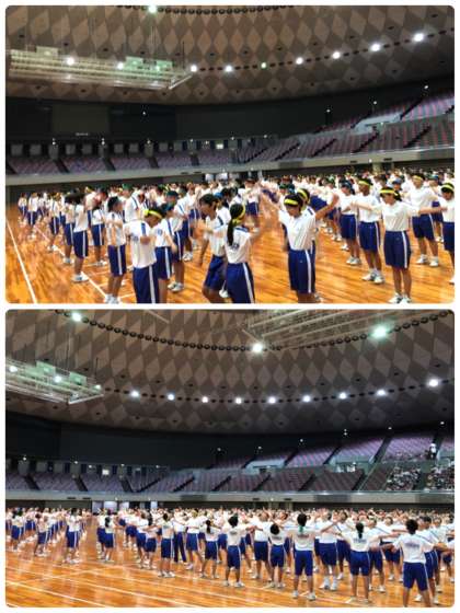 本日、第65回体育大会を丸善インテックアリーナ大阪で行っています。今年のテーマは「Aim for victory ~勝利を目指せ~」です。生徒のみなさん精一杯頑張りましょう。