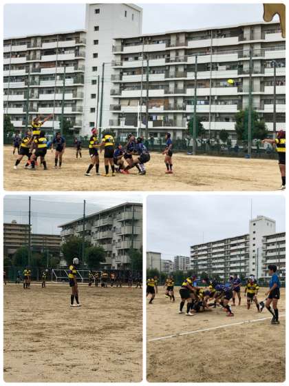 9月26日(土)、大阪中学校ラグビー大会3回戦が茨田中学校で行われました。お互いディフェンスがよく前半0-0で終える緊迫のゲーム展開でした。後半早々、3年生仲宗根くんのトライで先制。その後も一心不乱に戦い最終スコアは10-7で勝利しました。ベスト8進出です。来週の準々決勝も勝利へ向け頑張りましょう。