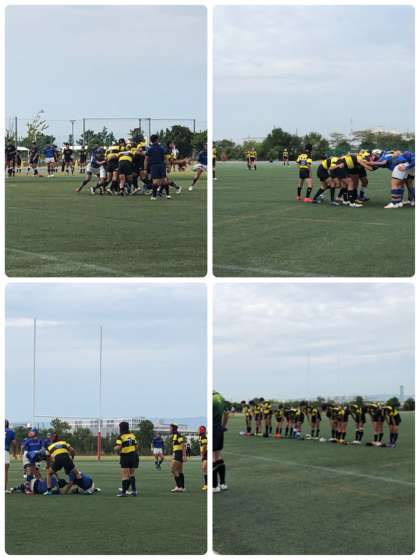 10月3日(土)、J-Green堺グランドにて大阪中学校ラグビー大会準々決勝、大正北中学校戦が行われました。土のグランドではなく、芝生のグランドでの試合でした。なかなかパスがつながらずトライすることができず完敗しました。大阪府大会ベスト8に入った力を次は、大阪市大会で発揮して頑張りましょう。