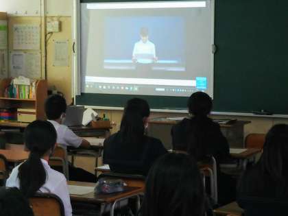例年は、体育館で立会演説会をおこなっていましたが、今年度はコロナ禍の影響により各教室で演説動画を見ることになりました。