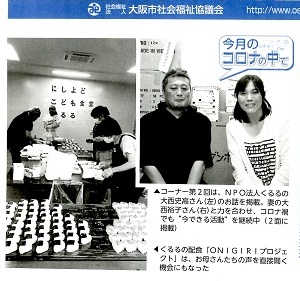 本校のホームページでも掲載しています「にしよどこども食堂 くるる」さんの記事が大阪市社会福祉協議会の新聞にも掲載されましたので紹介します。