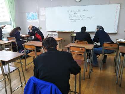 放課後は「グローバル教室」がおこなわれましたが、今日は1・2年生だけの学習会となりました。それでも5人の生徒が頑張って勉強しました。