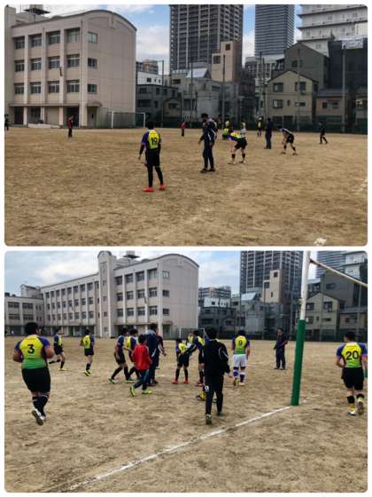 1月16日(土)、大阪市北地区ラグビー新人戦大会予選リーグ2戦目が市岡中学校で行われました。高倉中学校との対戦で、前半からリードし36-7で勝利しました。来週の3戦目もチーム一丸となり勝利を目指し頑張ります。