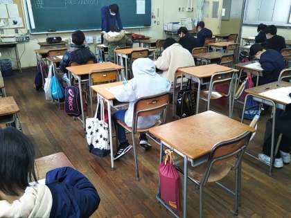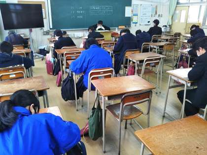 今日は英検の受検日です。消毒や換気など感染症対策をしっかりおこない実施しました。