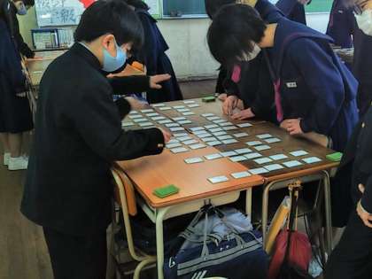 上の句の一文字を詠みあげるだけで、すばやく札を取っている人もいました。今日は練習でしたが、とても盛り上がって楽しそうでした。