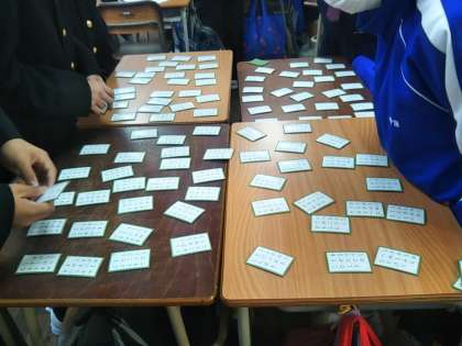 今日の1年生の一時間目は、お正月の風物詩「百人一首かるた」をしていました。
