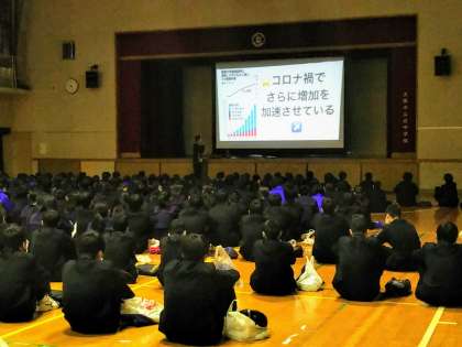 全ての生徒が健やかに成長できるように、児童虐待の実態やその予防などを学習しました。生徒たちもとても真剣に話を聞いていました。
