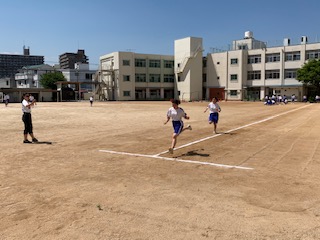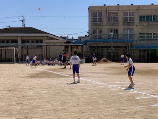 天気も良くさわやかな青空のした、体育の授業で「ボール投げ」「50m走」を行いました。体力のある生徒は、自主的に複数回の計測を行っていました。