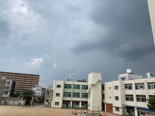 給食の後、学級活動をして下校予定でした。しかし、大気の状況が不安定で激しく雷の音や稲光がしたので、少し遅らせて下校させました。