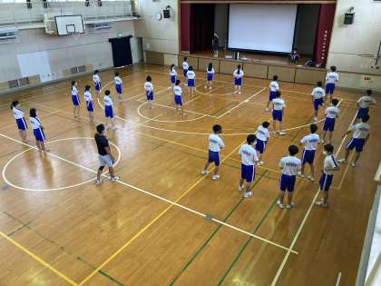 本日、学校再開。3年、体育大会に向け、ソーラン節の練習