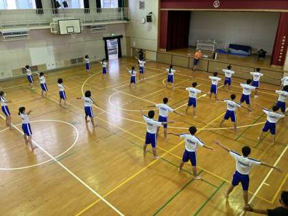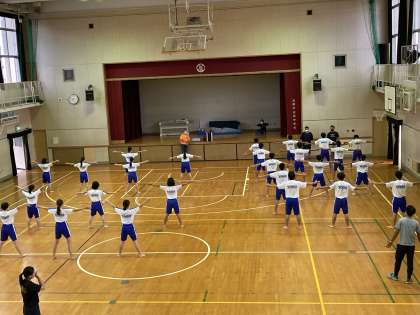体育大会に向け、早朝より3年生の有志が集まり。2日目の練習に励みました。