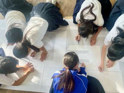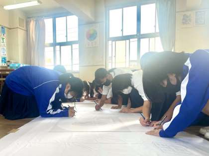 9月22日の体育大会に向けて横断幕の作成を開始しました。