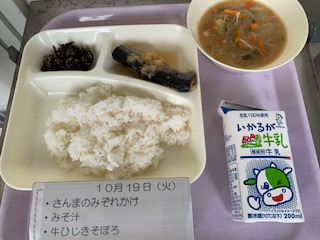 ごはん・牛乳・さんまのみぞれかけ・みそ汁・牛ひじきそぼろ