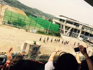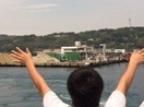 フェリーに乗り込み、島の人たちとテープでお別れをしました。