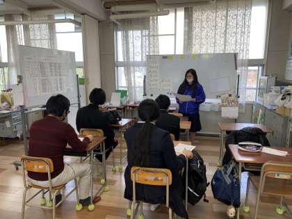 12月6日(月)、豊崎中学校でスペイン語の母語教室がありました。12月17日にあるワールドトークにむけて読む練習と自己紹介のカードを書きました。その後『高校でがんばりたいこと』というテーマで、スペイン語で作文を書く練習をしました。