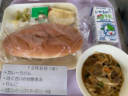パン・牛乳・カレーうどん・はくさいの甘酢あえ・りんご