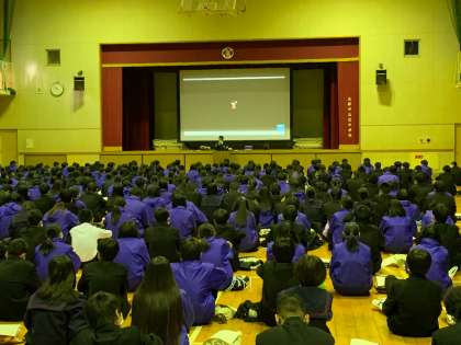 交通事故についてのDVDを視聴し、講話を聞くことができました。年末に向け自動車の往来も増え、安全に対する注意や心構えが大切です。また、生徒のみなさんは、自転車に乗ることも多くなり、安全な走行と歩行者への注意など安全に乗ることも大切です。