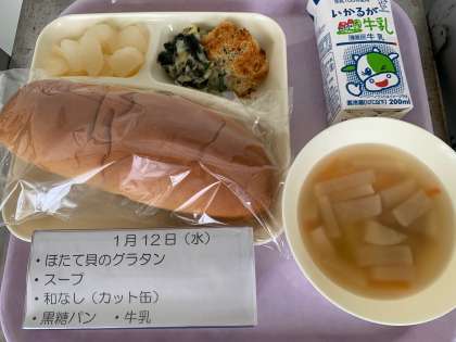 パン・牛乳・マカロニグラタン・ウインナーのスープ・和なし(カット缶)