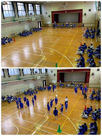 3月18日(金)、1年生は体育館で生徒たちが種目やルールを自分たちで考えつくったレクリエーション大会「淀リンピック」を行いました。
