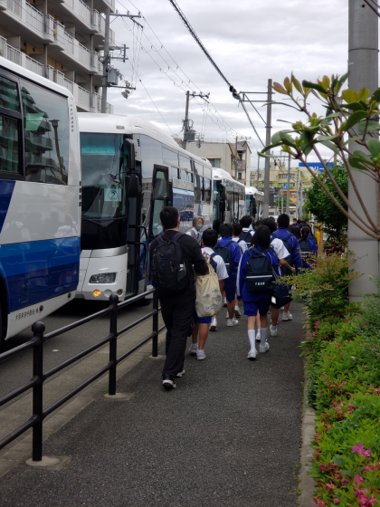 保護者や教職員に見送っていただき、予定通り出発しました。