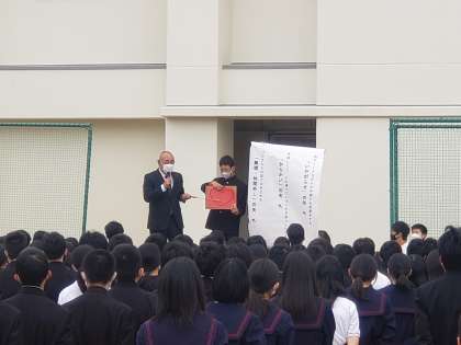 生徒会執行部からは、いじめをなくすためのスローガンの募集を全校生徒に呼びかけました。