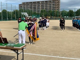 昨年度、キックベースで優勝することができました。優勝旗を返還し、レプリカをいただきました。