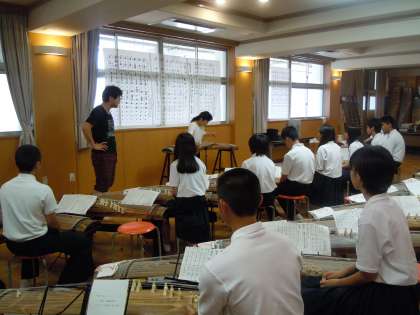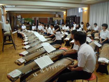 授業で、こんなに多くの「筝」を演奏する学校は全国でも珍しい学校です。