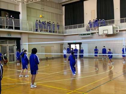 12月9日(金)5〜6限を使って、バレーボール大会を行いました。学年の体育的行事に、全員が盛り上がりました。楽しい時間を共有したと思います。
