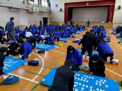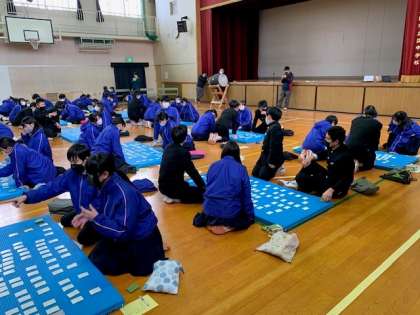 2月3日(金)体育館に畳を敷いて、百人一首大会を行いました。札を読む先生の声に集中して、たくさんの札を取って頑張っていました。