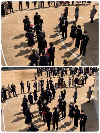 第2期工事のため、体育館の入口が一か所であることから、ご来賓のみなさまにはご列席いただけなかったことをお詫び申しあげます。