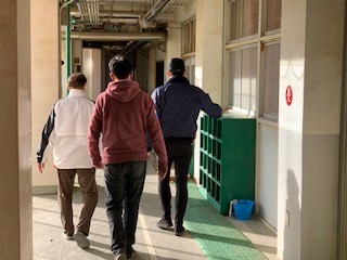 淀中では、授業中等については、正門を施錠しています。来校者に対しては、インターホンで要件を確認し、小門を解錠して入校していただいています。