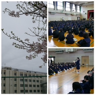 令和6年度の始業式を行いました。期待と不安の気持ちで落ち着かないところが正直なところだと思いますが、前向きな気持ちをしっかりと持って、希望に満ちたスタートをきってほしいです。新しいクラスの発表ではあちらこちらから声がきこえてきました。仲の良かった友達と離れた子もいることでしょう。しかし新しい出会いもあるはず。これまで親しく話をしたことがなかったけどこんなに仲良くなれるなんて‥という嬉しい驚きもあるかもしれません。