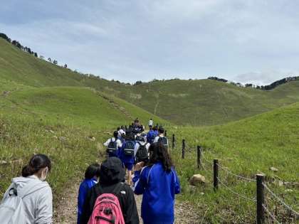 スタッフの方が、曽爾高原やハイキングについての説明をしてくださり、クラス順にスタートしました。