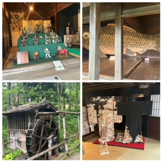 飛騨の里、展示物の一部です。特に和紙の鯉のぼりは大迫力です。