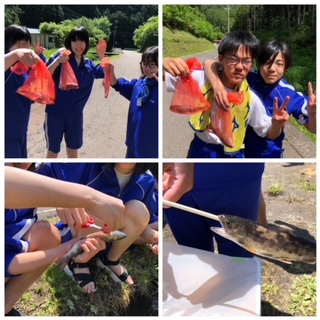 魚は手でつかもうとしてもなかなかつかめません。苦労して捕まえて、捕まえた魚は美味しくいただきました。