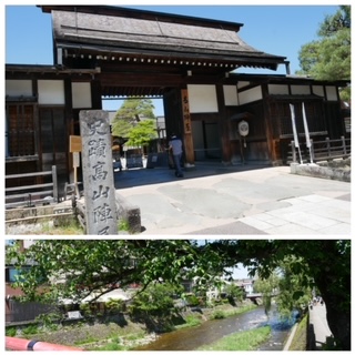 スタート地点からのもっとも遠い端のポイントが観光名所の高山陣屋跡です。目印の1つ宮川を渡り古い街並みが広がっています。その古い街並みにたくさんのお店が並び、子どもたちは散策中。京都よりも落ち着いた雰囲気で良い感じです。