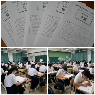 チャレンジテストは大阪府教育委員会が実施する府内統一テストで大阪市教育委員会も参加しています。第1の目的は教育施策の成果と課題を検証することですが、大切な目的として、府内中学校での評価の公平性を担保するための資料としても使われます。最終的にチャレンジテストの結果が高校入試の持ち点に影響することになるので、3年生のみんなには、現在の持てる力を精一杯出し切る1日にしてほしいです。頑張れ3年生。