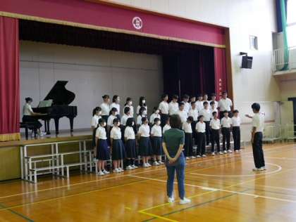 7限は体育館で2年生が合唱練習の仕上げに取り組んでいました。ひな壇にならび指揮者のリード、ピアノ伴奏で歌声を響かせます。教室で練習している時よりも声量が小さく感じられるもの。その感覚を知って来週の直前練習ではよりダイナミックな歌声を響かせてください。美しいハーモニーでした。