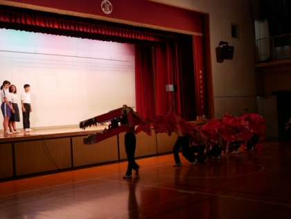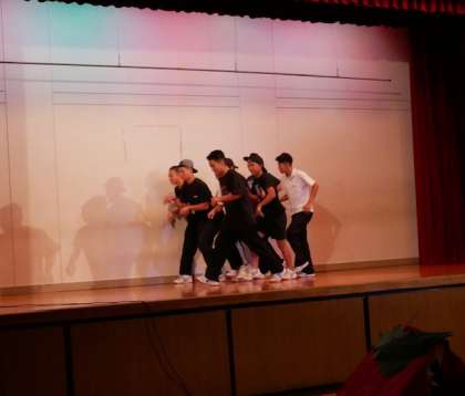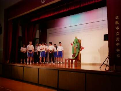 文化祭に向けた各学年の取り組みは大詰め。今日の写真は3年生学年劇の舞台練習です。道具類、音響、照明すべてを入れて本番さながらに舞台で通し稽古をしていました。昨日はセリフ覚えれるかなと少し心配しましたが、役者さんたちしっかりと通る声でセリフを言えていましたよ。道具類も見応えがありました。あまり詳しく取り上げると当日の楽しみが減ってしまうので何となくにしておきますが、うん?舞台の前にいる大きな赤い物体は何?これをつくりあげるのは相当に大変だったと思います。黒い衣装の男子のダンスチームも登場。さてこの後どんなダンスが披露されたのか。これも当日のお楽しみにしておきましょう。よく練習したことが伝わってくるキレでした。