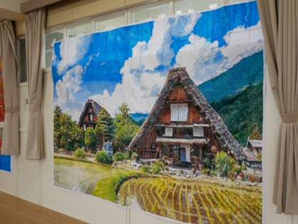 取組期間中、いつようすを見にいっても、1年生は熱心に細かな色塗りでパーツづくりに励んでいました。それがこんな大きな美しい絵に仕上がるなんて。まさに「協力」そのものです。