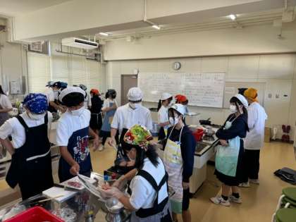 技術の授業で育てたラデッシュを使ったハンバーグを家庭科の調理実習で作りました。
