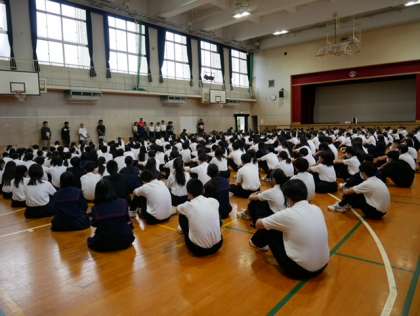 10/28 月曜日の朝、全校集会 今週は体育大会です