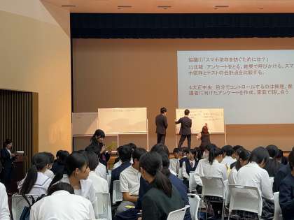 11月2日(土)に生徒会役員が「大阪市スマホサミット」に参加しました。この会は、大阪市立中学校の生徒会役員を中心とする代表生徒たちが集まり、スマートフォンなど情報端末に依存しがちな生活について自分たちで考えてみようというものです。