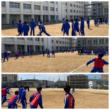 昨日は校区小学校の卒業式に出席していて直接見ることはできなかったのですが、球技大会の写真が届きましたのでアップします。青空のもとドッジボールで躍動しました。教室での勉強はもちろん大切だけど、こうしてみんなで思いっきり身体を動かす機会は大切です。学校でしかできない経験です。この1年の最後の大切な楽しい思い出になったのではないでしょうか。