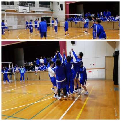2年生は修了式前の最終日、1限から4限をつかった大規模なクラス対抗バレーボール大会を行いました。みんなで楽しめるように、女子ではワンバンあり、同じ人が連続でさわるのあり、3回ではなく5回までで返球等々の特別ルールが設けられました。楽しそうにゲームに興じています。男子はさすがの躍動感。バレーボール経験者でないのに思い切ってジャンプサーブまで打っていました。円陣を組んで雄叫びをあげているのが羨ましかったです。たくさん楽しもう。2年生の時間はあとわずかです。